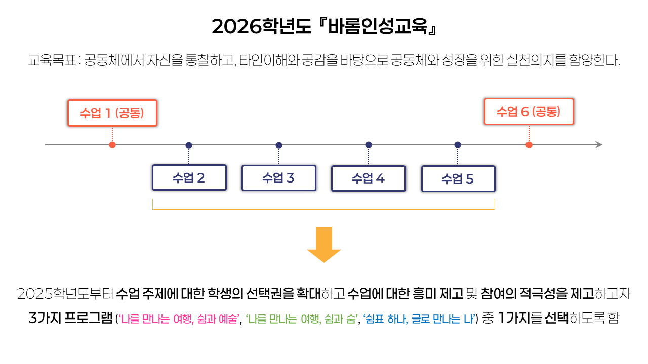 ① 쉼과 숨의 리듬 ② 나의 인생매체 ③ 나의 강점 찾기 |